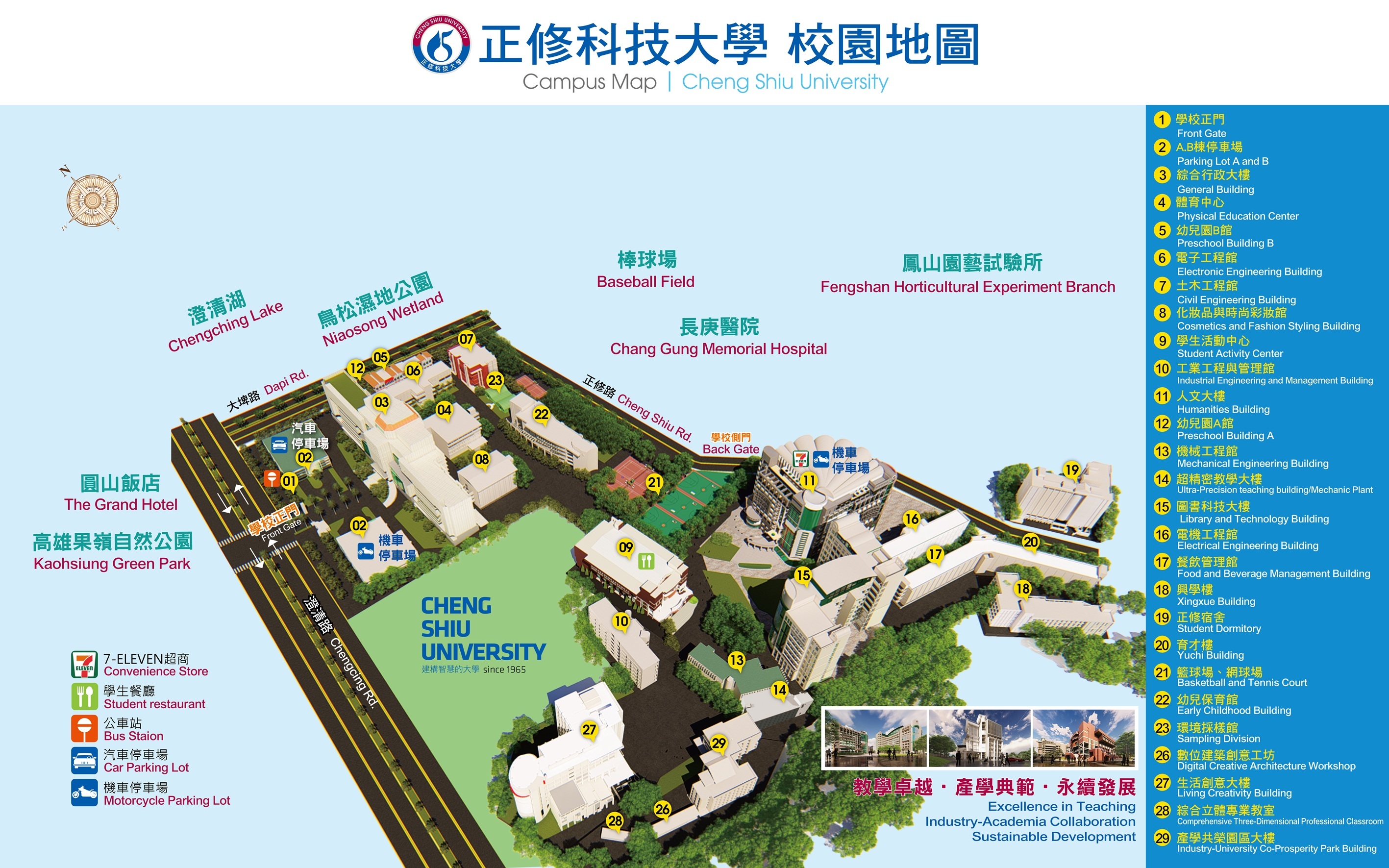 西向接國道1號北上續行,下三多交流道或中正交流道後右轉直行,至澄清路左轉直行即可抵達。 |